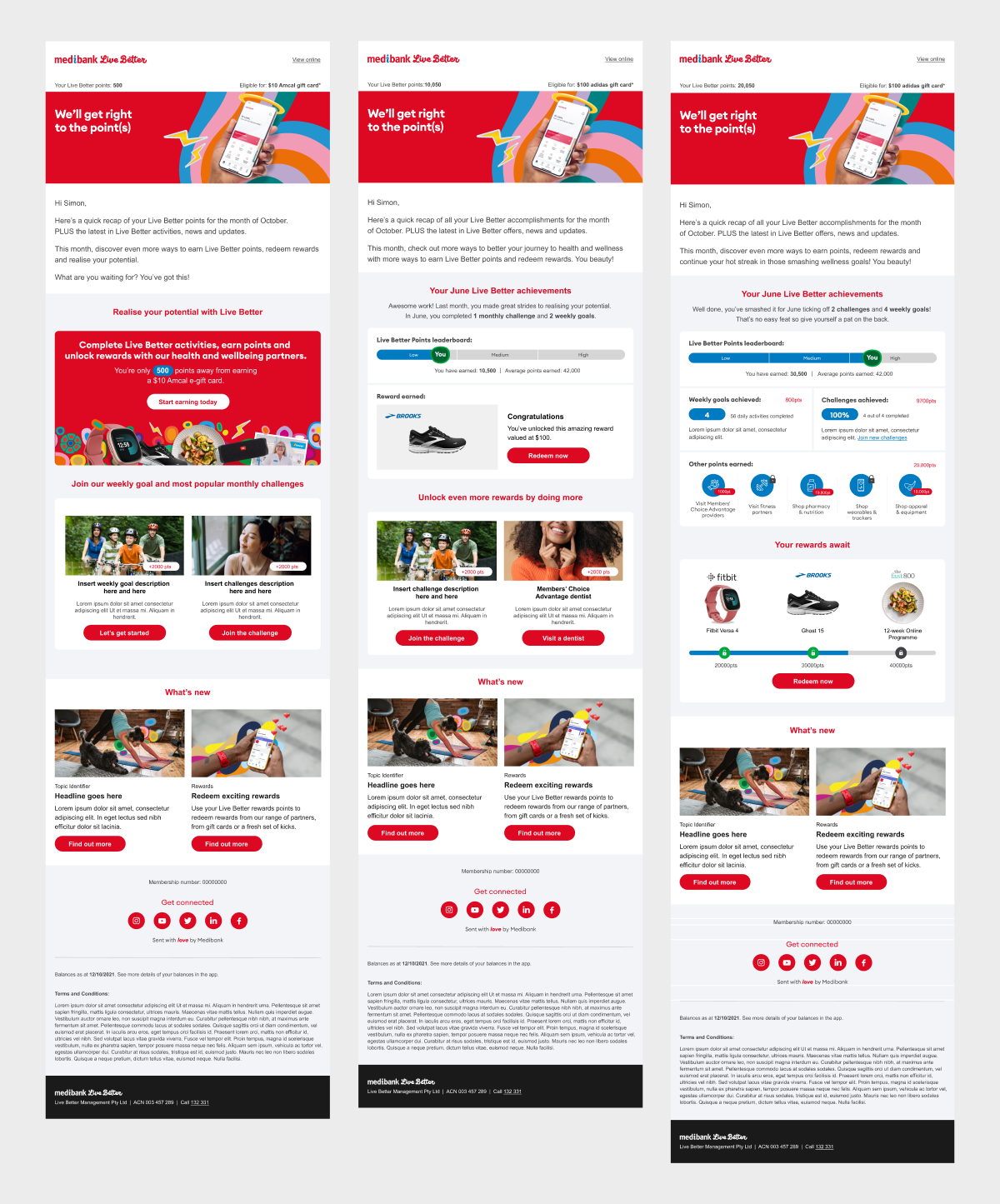 Live Better is a rewards program delivered through a mobile app and supported by a monthly eDM, but engagement across both touchpoints was inconsistent and difficult to influence over time. The eDM primarily functioned as an informational update and was not reliably driving meaningful interaction or sustained in-app behaviour, while different member groups showed varying levels of motivation and readiness to engage. This created an opportunity to better align the existing eDM with the product experience and strengthen its role in supporting ongoing engagement.