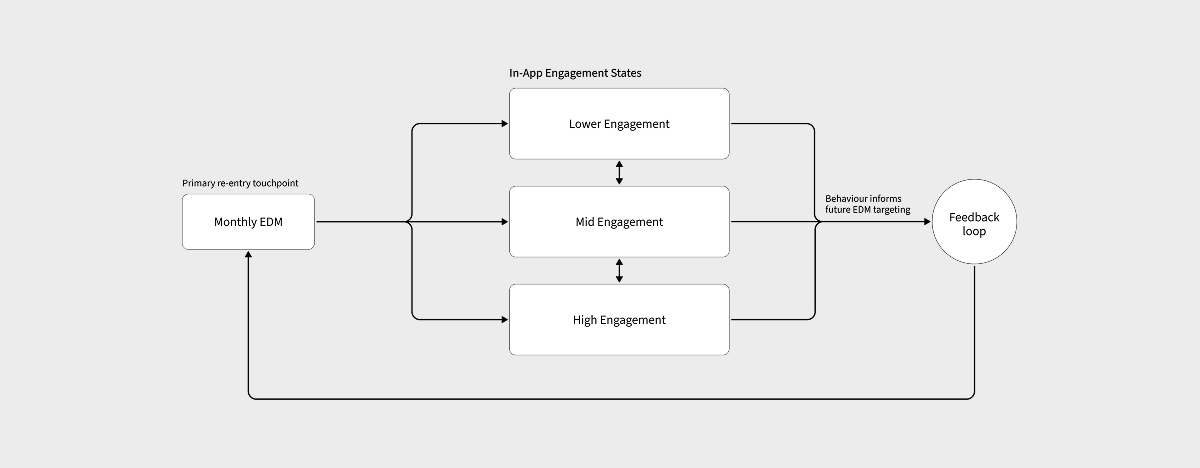 By improving both how members engaged with the monthly eDM and how effectively it drove re-entry into the app, the initiative increased repeat app usage, improved reward interaction frequency and created clearer behavioural pathways toward higher engagement. The work also established a scalable engagement capability that strengthened the role of eDM within the broader product lifecycle.